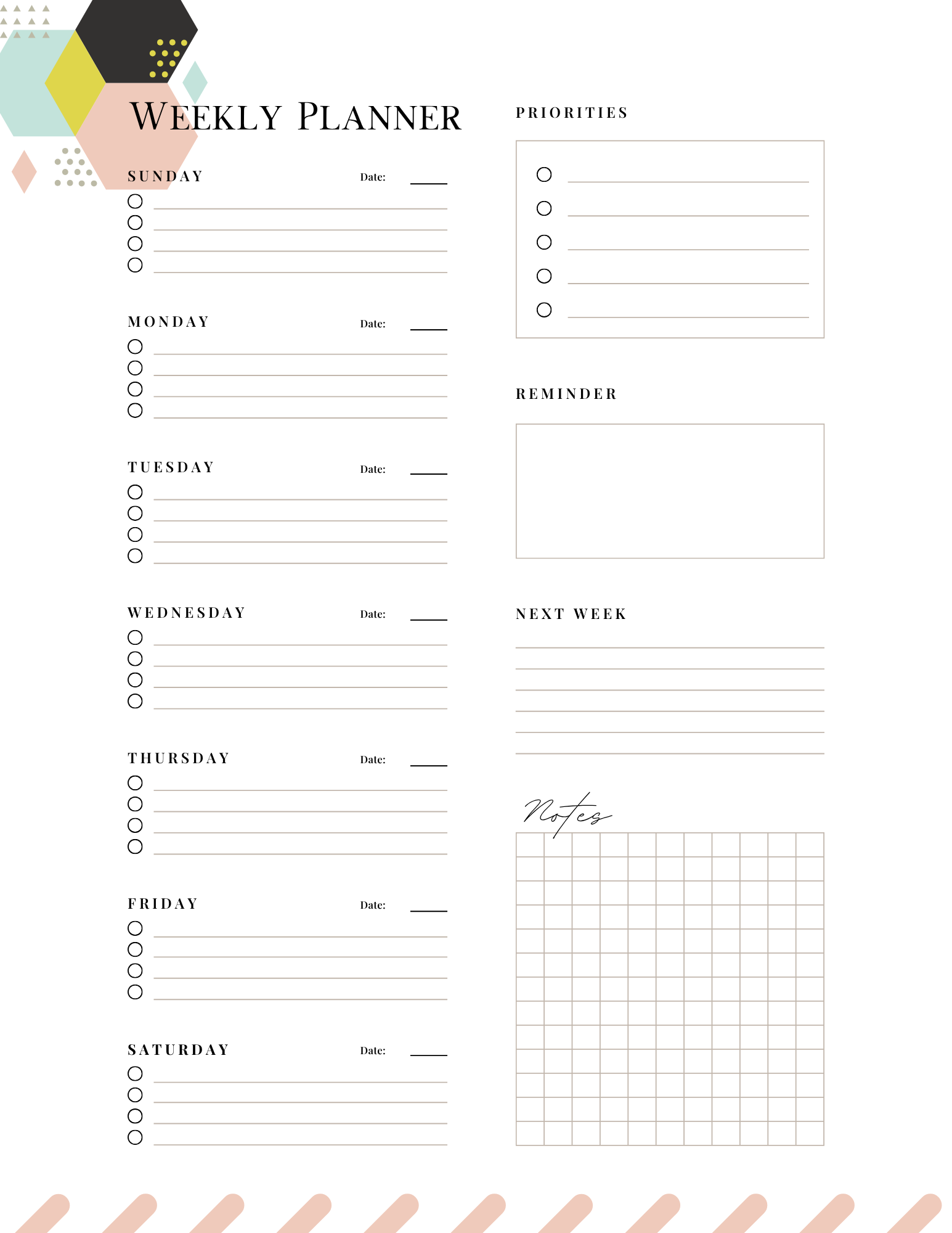 Weekly Planner: Organize your week with space for priorities, appointments, and meals